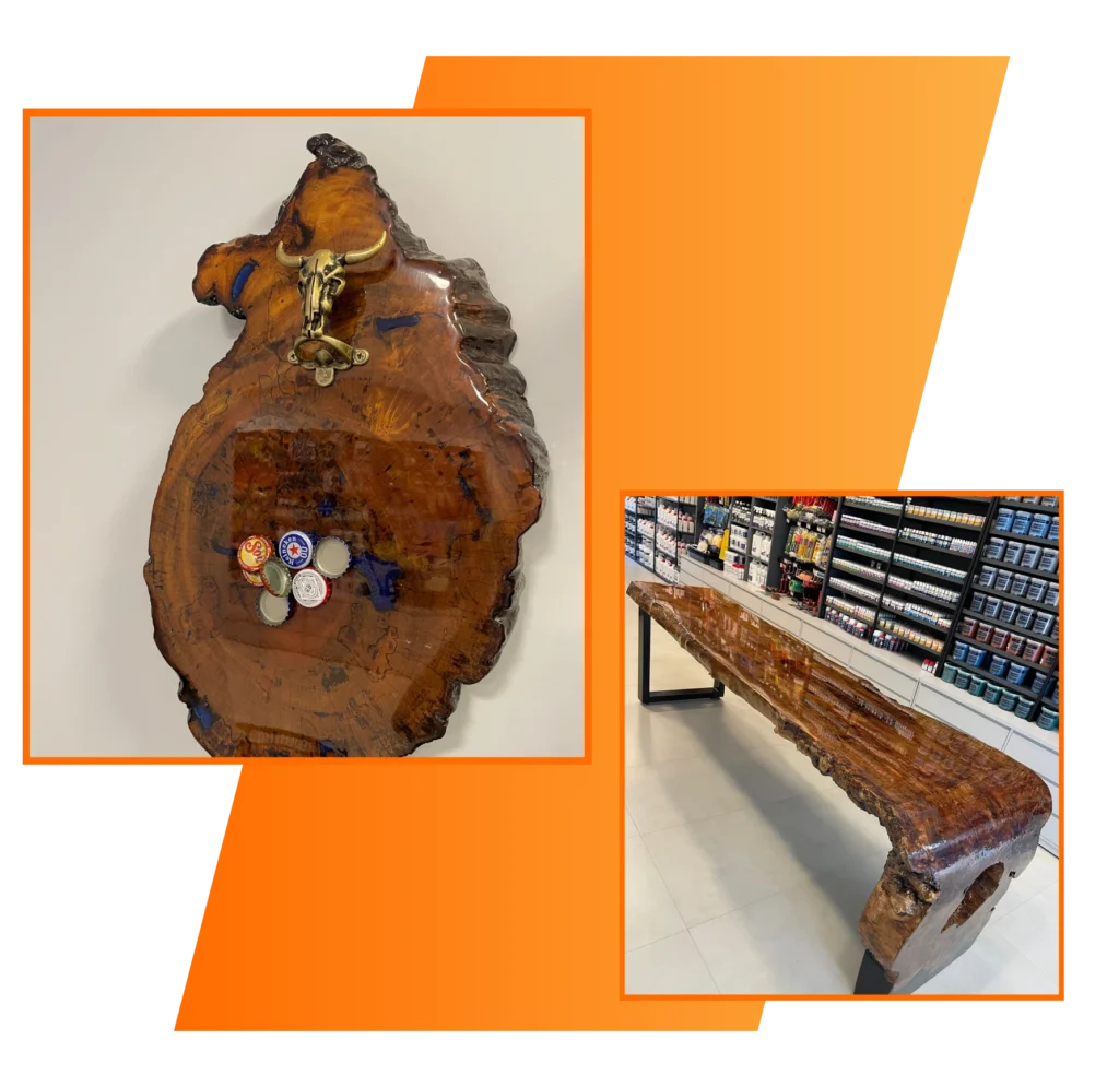 Aqui estão alguns dos projetos que já produzimos, do básico ao avançado. Cada peça feita com técnica, criatividade e o conhecimento que você vai aprender dentro do Curso Epóxi Premium.